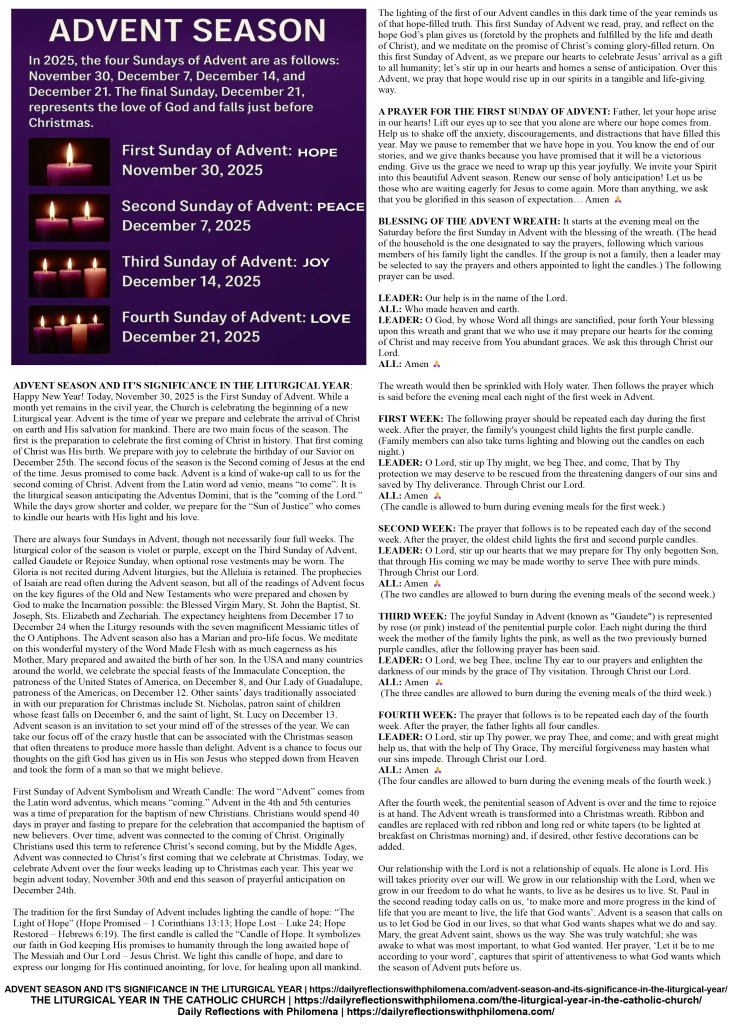 ADVENT SEASON AND IT’S SIGNIFICANCE IN THE LITURGICAL YEAR | https://dailyreflectionswithphilomena.com/advent-season-and-its-significance-in-the-liturgical-year/