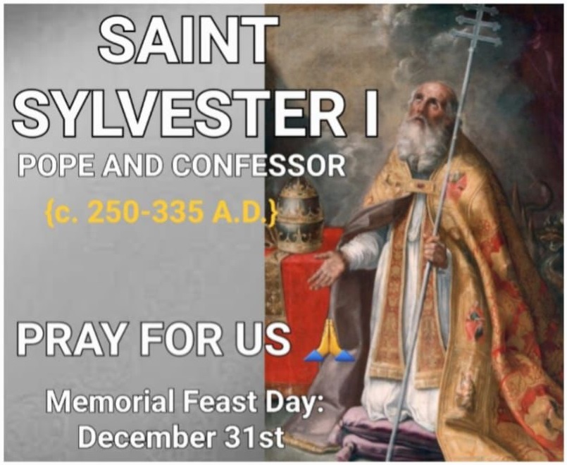 MEMORIAL OF SAINT SYLVESTER I, POPE AND CONFESSOR | DECEMBER 31ST|