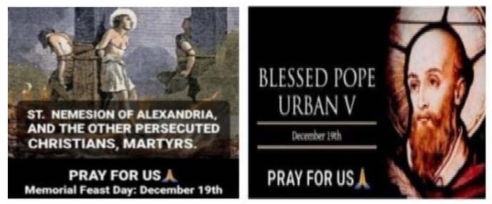 MEMORIAL OF SAINT NEMESION OF ALEXANDRIA, AND THE OTHER CHRISTIANS OF THE SAME PERSECUTION, MARTYRS AND BLESSED URBAN V, POPE | DECEMBER 19TH |