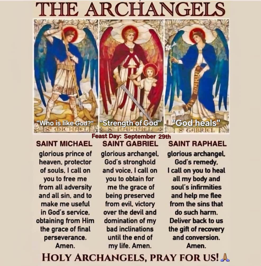 FEAST OF SAINTS MICHAEL; GABRIEL AND RAPHAEL, ARCHANGELS ~ FEAST DAY ~ SEPTEMBER 29TH: Today, we celebrate the Feast of Saints Michael, Gabriel, and Raphael, Archangels....