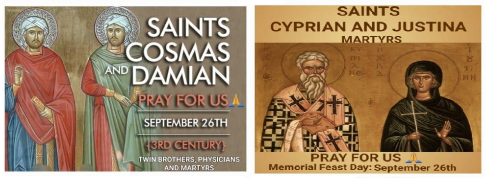 MEMORIAL OF SAINTS COSMAS AND DAMIAN, MARTYRS AND SAINTS CYPRIAN AND JUSTINA, MARTYRS: Today, we celebrate the Memorial of Saints Cosmas and Damian, Martyrs and Saints...