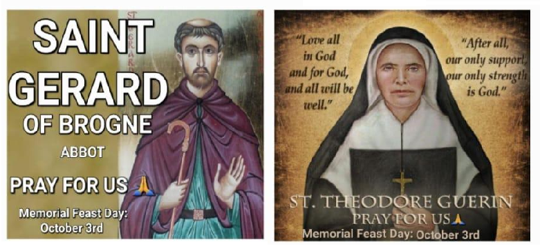 MEMORIAL OF SAINT GERARD OF BROGNE, ABBOT AND SAINT THEODORE (THEODORA) GUERIN, RELIGIOUS: Today, we celebrate the Memorial of Saint Gerard of Brogne, Abbot and Saint...