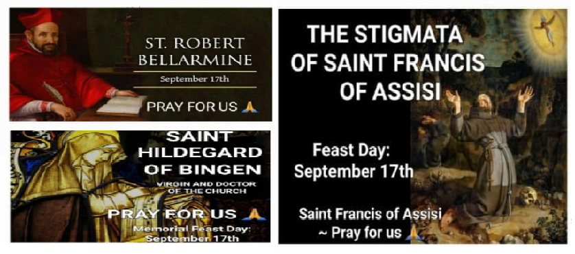 MEMORIAL OF SAINT ROBERT BELLARMINE, BISHOP AND DOCTOR; SAINT HILDEGARD OF BINGEN, VIRGIN AND DOCTOR OF THE CHURCH AND THE STIGMATA OF SAINT FRANCIS OF ASSISI...