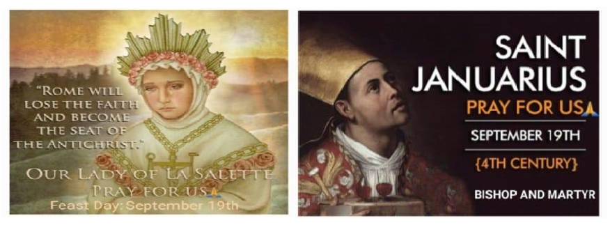 FEAST OF OUR LADY OF LA SALETTE; MEMORIAL OF SAINT JANUARIUS, BISHOP AND MARTYR ~ FEAST DAY ~ SEPTEMBER 19TH: Today, we celebrate the Feast of...