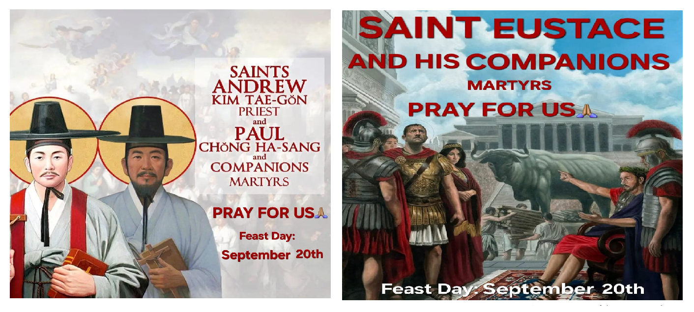 MEMORIAL OF SAINTS ANDREW KIM TAE-GÕN, PRIEST, AND PAUL CHÕNG HA-SANG, AND COMPANIONS, MARTYRS AND SAINT EUSTACE AND HIS COMPANIONS, MARTYRS: Today, we celebrate the Memorial...