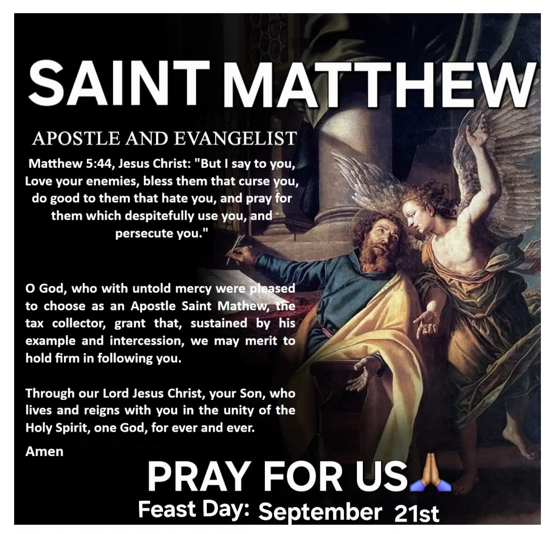 FEAST OF SAINT MATTHEW, APOSTLE AND EVANGELIST: Today, we celebrate the great Feast of one of the Twelve Apostles of Our Lord Jesus Christ, and who...