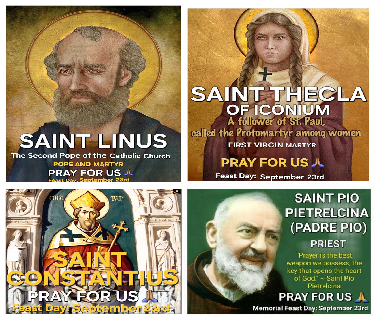 MEMORIAL OF SAINT PIO OF PIETRELCINA (PADRE PIO), PRIEST; SAINT LINUS, POPE AND MARTYR; SAINT THECLA, FIRST VIRGIN MARTYR AND SAINT CONSTANTIUS: Today, we celebrate the...