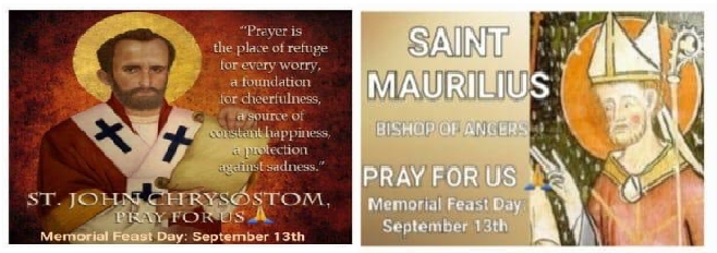 MEMORIAL OF SAINT JOHN CHRYSOSTOM, BISHOP, AND DOCTOR AND SAINT MAURILIUS, BISHOP OF ANGERS ~ FEAST DAY: SEPTEMBER 13TH: Today, we celebrate the Memorial of Saint...