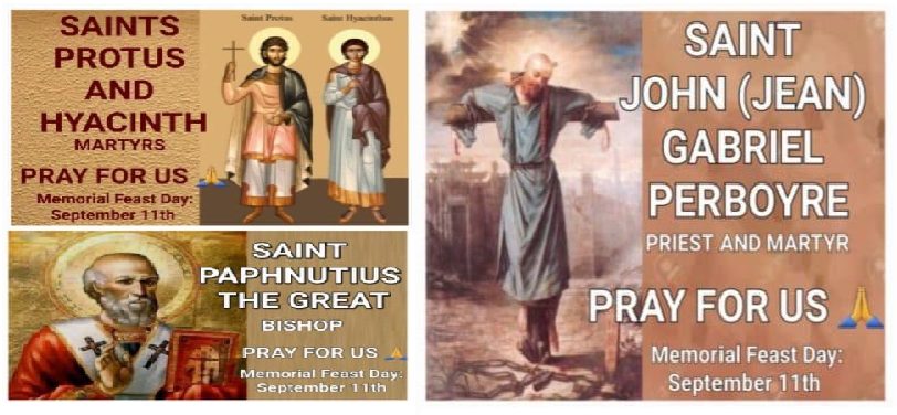 SAINT PROTUS AND HYACINTH, MARTYRS; SAINT PAPHNUTIUS THE GREAT, BISHOP AND SAINT JOHN (JEAN) GABRIEL PERBOYRE, PRIEST AND MARTYR ~ FEAST DAY: SEPTEMBER 11TH: Today, we...