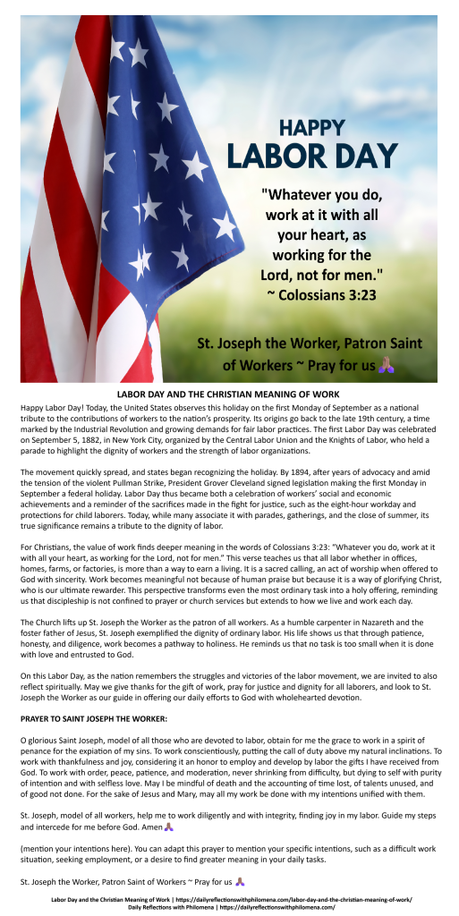 Labor Day and the Christian Meaning of Work | https://dailyreflectionswithphilomena.com/labor-day-and-the-christian-meaning-of-work/