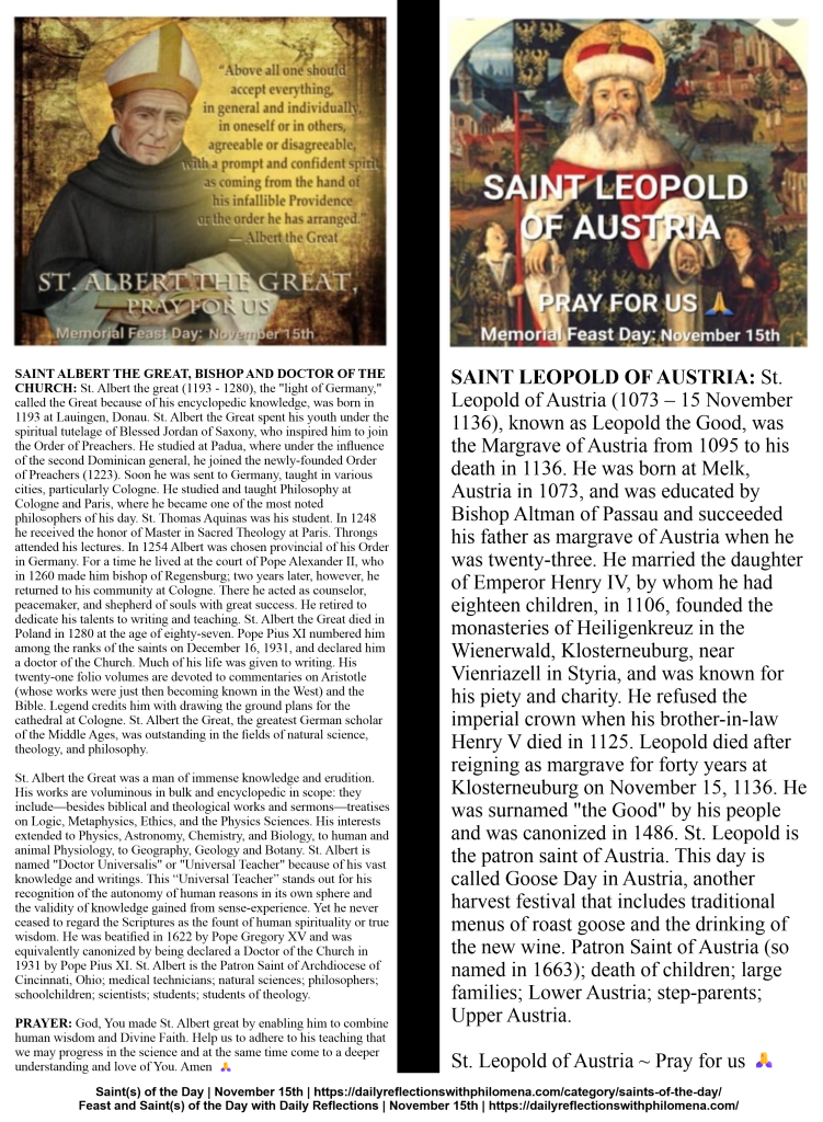 (Direct link to the detailed history of Saint Albert the Great and Saint Leopold of Austria | https://dailyreflectionswithphilomena.com/saints-of-the-day-feast-day-november-15th/)